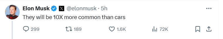 关于这则采访视频,马斯克默示赞同黄仁勋的说法,他还称,“它们(东说念主形机器东说念主)的普及经过将比汽车高出10倍。”
