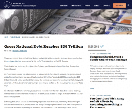 负包袱联邦预算委员会(CRFB)主席玛雅·麦克金尼斯指出,如今,政府借款变得像四季更迭雷同细则无疑。