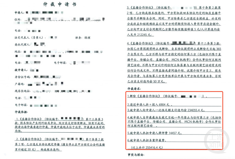 上游新闻记者了解到,晓玲和小雅等主播签下的公约中商定,两边发生纠纷,且协商不成后只可通过仲裁裁决。而凭证联系步骤,商事仲裁具有守密、快速、门径浅易的脾气。关于这些MCN公司而言,仲裁后果不会对外公开,更成心于保护公司声誉。