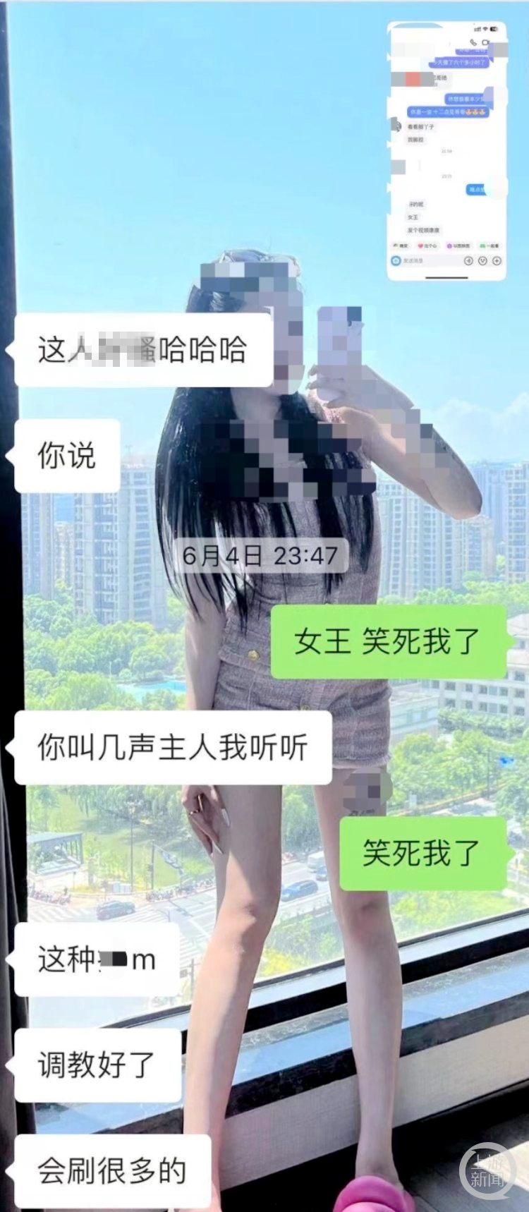 “因为是新账号,牙东说念主说先发一些短视频,每天开6个小时直播诱导粉丝,直播内容就是和粉丝聊天。”小雅说,成为新主播后,她发现直播内容我方并不行作念主,牙东说念主和公司不仅要求她拍摄一些露骨的擦边短视频,还被要求在直播中要穿得“精练”。在擅自和其他同期入职主播聊天时,小雅得知还有的新主播被牙东说念主暗意为“榜一老迈”提供更露骨的视频。一张主播与牙东说念主聊天截图高傲,牙东说念主在商酌刷礼物的金额后提到“这种调教好了,会刷好多的(礼物)”。