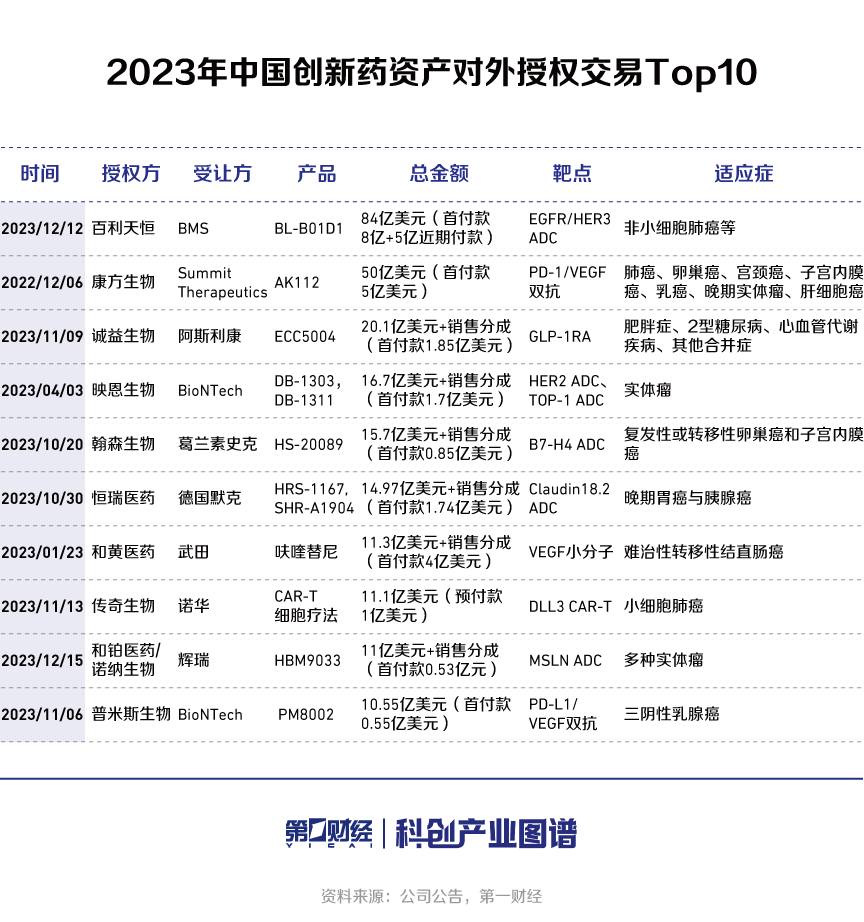 字据医药魔方数据,2023年全年,中国ADC药物BD出海交往就达到22起,首付款总数16.8亿好意思元,总交往金额悉数逾越200亿好意思元。全年中国对外授权的药物管线前十位中,有一半是ADC药物。